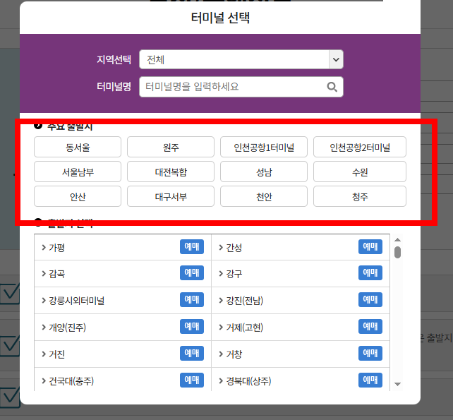 동서울터미널 시간표 조회 사이트